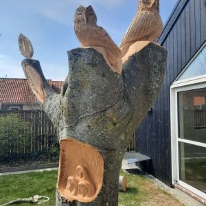 Overvejer du efter fældningen, at få lavet en smuk træskulptur i den tilbageværende stub, er det også en mulighed.